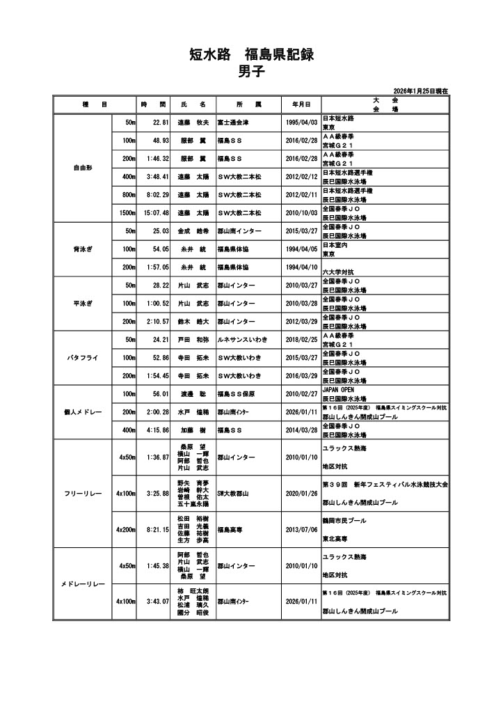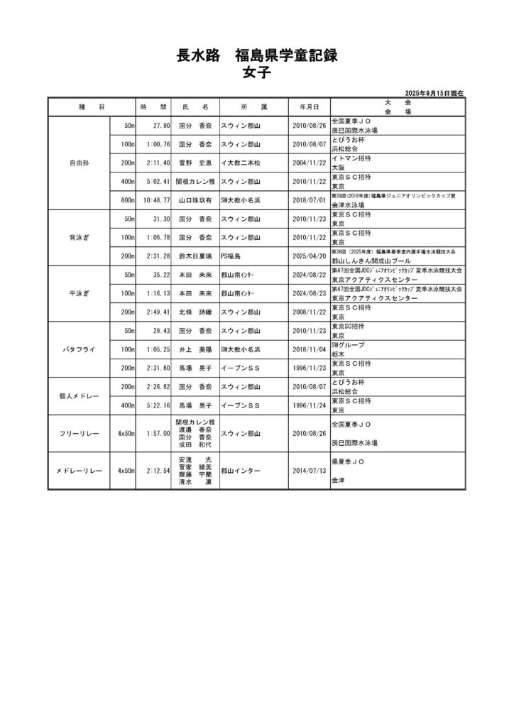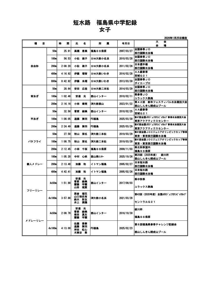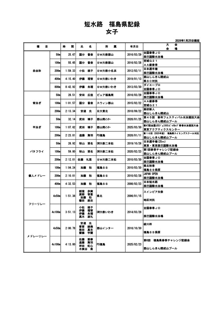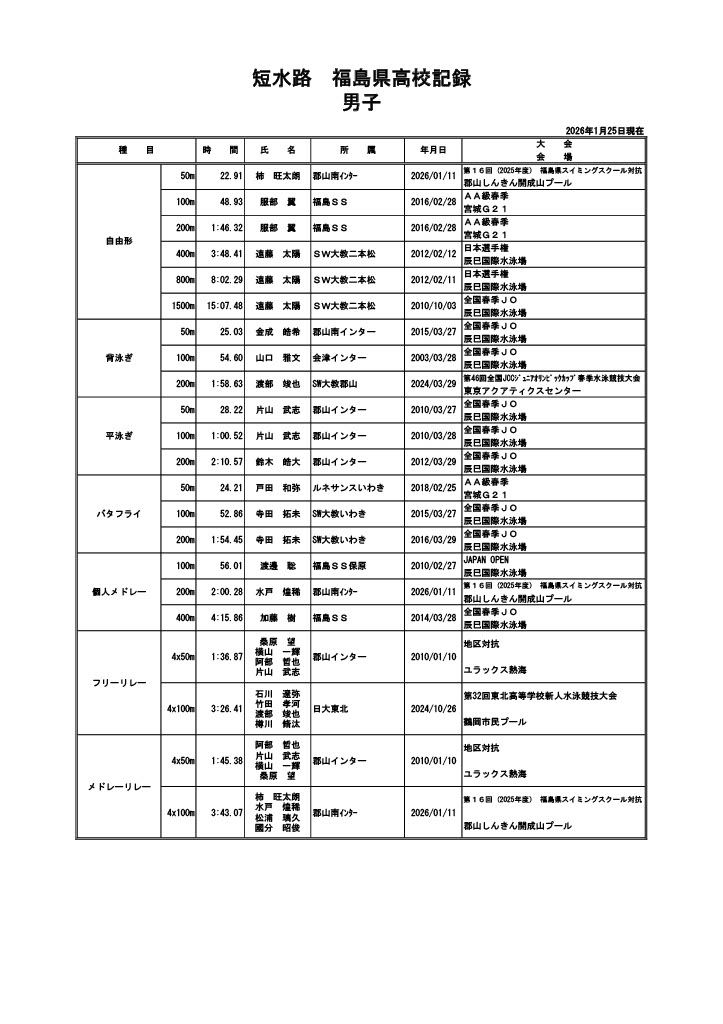 令和7年度 福島県高等学校新人体育大会水泳競技大会